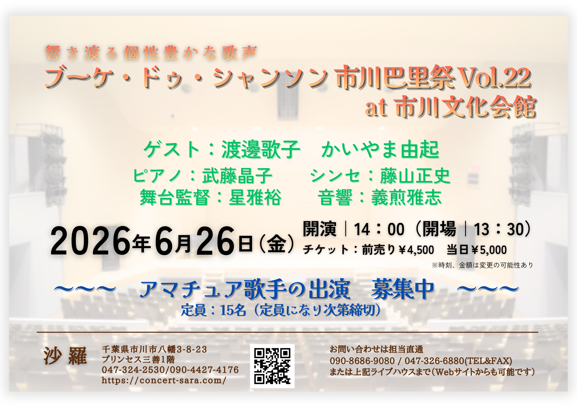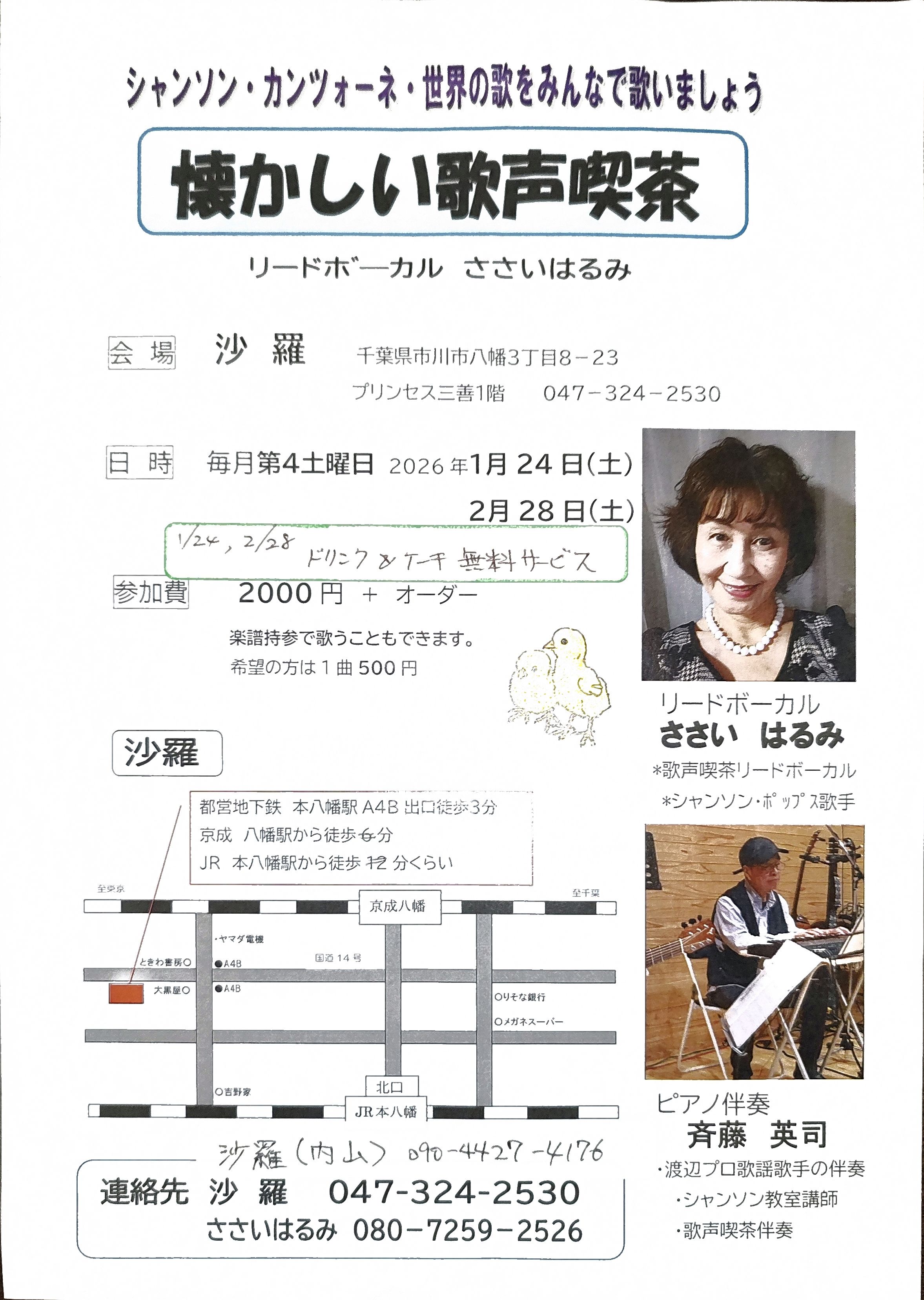 沙羅の歌声喫茶、始めました。第2回は2026/2/28(土)