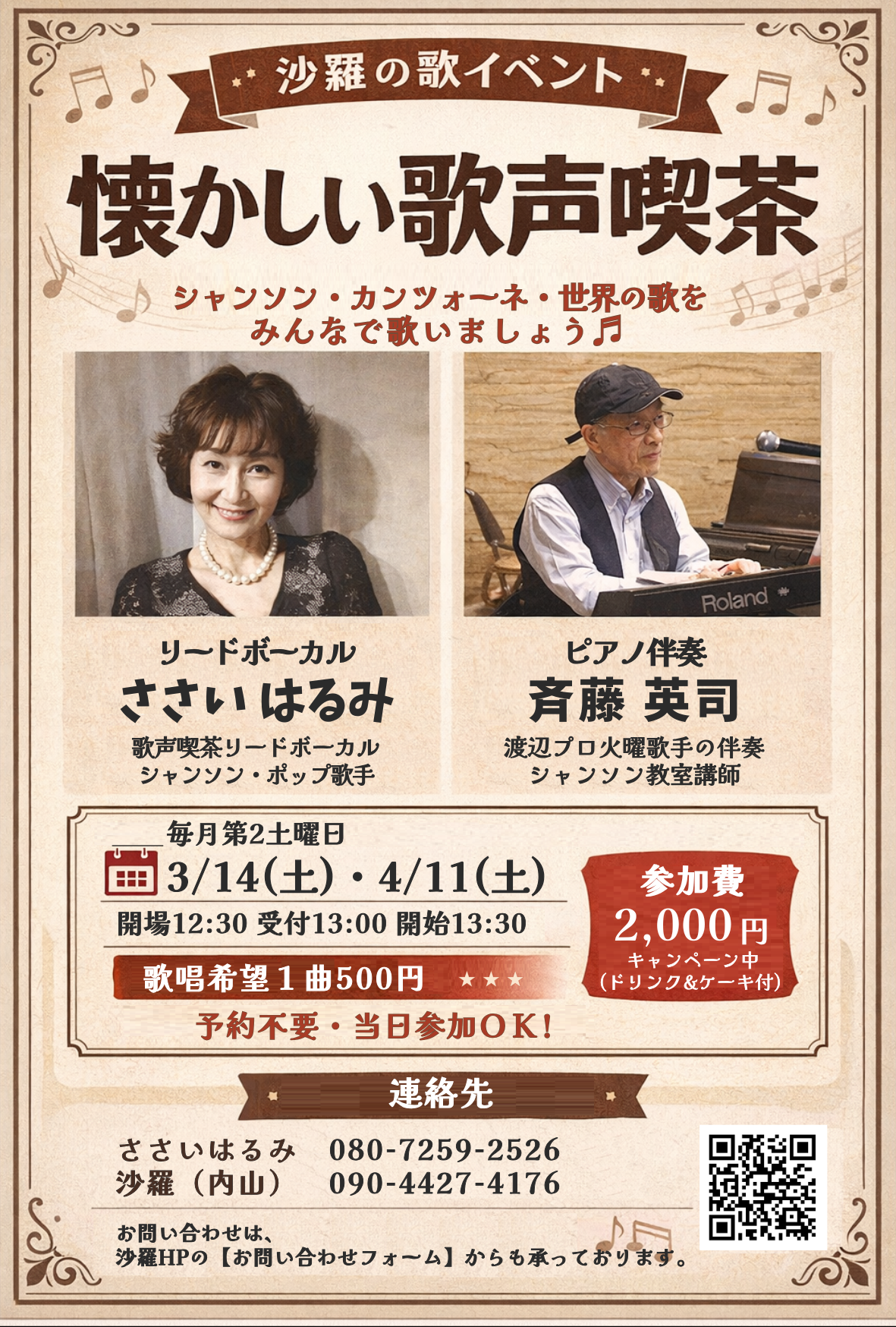 沙羅の歌声喫茶、始めました。♪毎月第2土曜♪